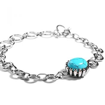 Genuine Turquoise Firoza Gemstone Platinum Plated Center Stone Link Bracelet