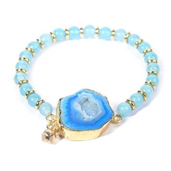 Gempro Gemstones Jewelry Genuine Blue Druzy and Jade Gold Plated Stretchable Bracelet for Women and Girls