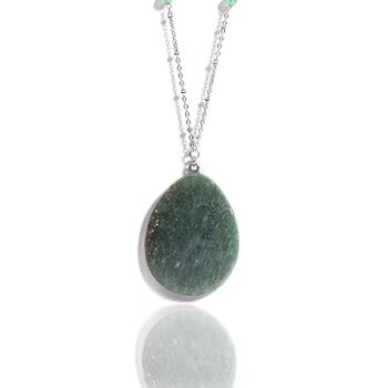 Gempro Genuine Green Aventurine Gemstone Silver Chain Pendant for Women