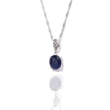 Gempro Genuine Gemstone Blue Onyx Oval Chain Pendant for Women